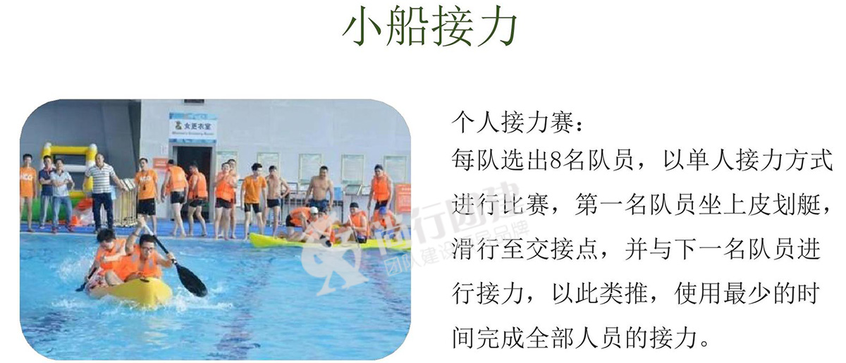 部分活動項目;水上跑步球、風雨同舟、精衛填海、水上呼拉圈、水上拔河、水上呼啦圈、龍舟接力、魚躍龍門、飛奪瀘定橋、天降奇財、絕地營救、水上仙人指路等。